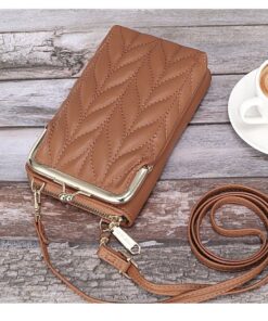Women Sling Purse PU Leather Crossbody Phone Pouch with 2 Layer Zippers – Brown