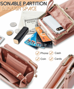 Women Sling Purse PU Leather Crossbody Phone Pouch with 2 Layer Zippers – Pink