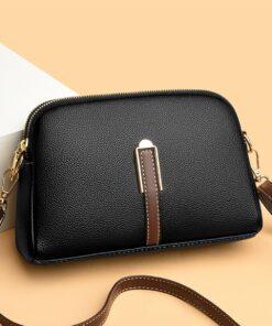 Women’s Adjustable Strap PU Leather Crossbody Bag – Black