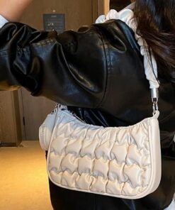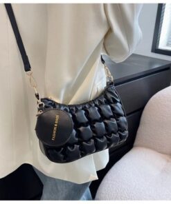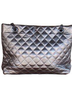 Women’s Quilted Metallic Shoulder Bag with Chain Strap & Turn-Lock Closure