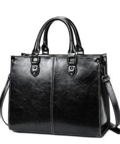 Women’s Shoulder Strap Faux Leather Handbag – Black