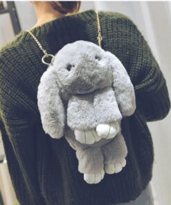 Bunny Rabbit Plush Sling Crossbody Bag with Chain – Grey – Pack of 2