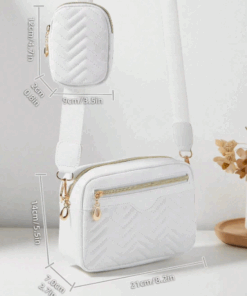 Chevron Quilted Crossbody Bag With Attached Pouch – White