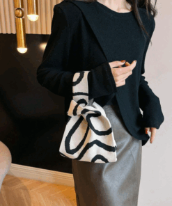 Chic Abstract Patterned Knot Tote Bag – White & Black