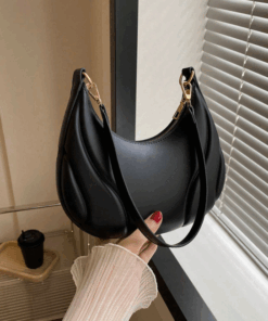 Chic Crescent Shoulder Bag with Gold Chain Strap – Black