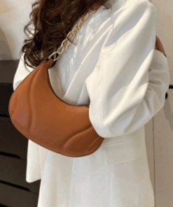 Chic Crescent Shoulder Bag with Gold Chain Strap – Brown