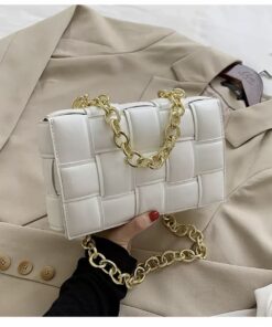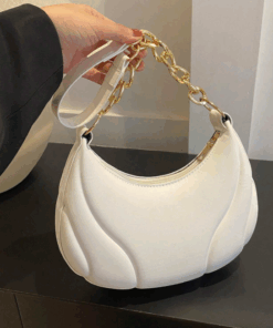 Chic Crescent Shoulder Bag with Gold Chain Strap – White