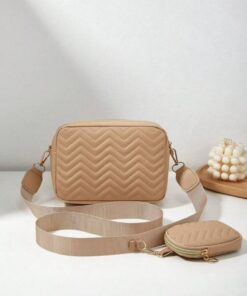 Chic Embroidered Shoulder Crossbody Bag and Purse Combo Set – Beige