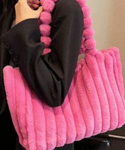 Chic Large Capacity Plush Faux Fur Tote Bag With PU Leather Interior – Pink