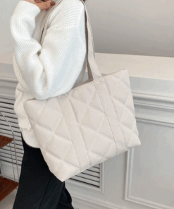 Chic Quilted Faux Leather Shoulder Tote Bag – Beige