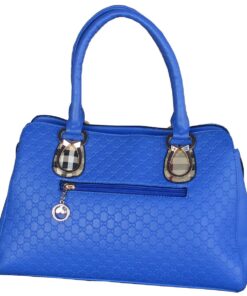 Elegant Royal Blue Imitation Leather Handbag – Gold Accents – Quilted Design