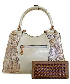 Fino 6228+SK-DK530 Luxury Patent Faux Leather Shoulder Bag with Purse Set – Cream