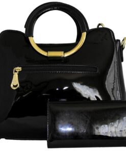 Fino 7342 Faux Leather Stylish Ring Handle Shoulder Bag with Purse – Black