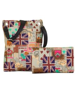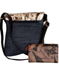 Fino A515-1858+1655-093 Paris Tower Crossbody/ Sling Denim Bag Purse Set – Blue & Brown