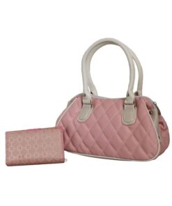 Fino A2361+A030-093 Faux Leather Quilted Bag with Purse – Pink