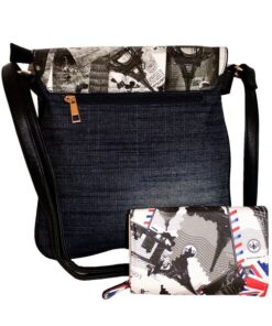 Fino A515-1858+1655-093 Paris Tower Crossbody/ Sling Denim Bag Purse Set – Blue & White