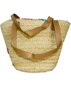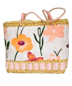 Fino CJK-05052 Straw/Canvas Floral Embellished Beach Bag – Pink