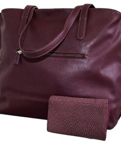 Fino Faux Suede Leather Tote Bag & Purse Set G-8213 – Burgundy