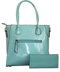 Fino GIO-A002BU+A59 BL Stylish Patent Faux Leather Bag & Purse Set