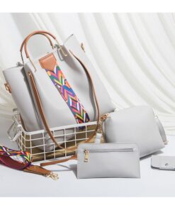 4 Piece Set Women Fashion Handbags Tote Bag Shoulder Bag – Grey