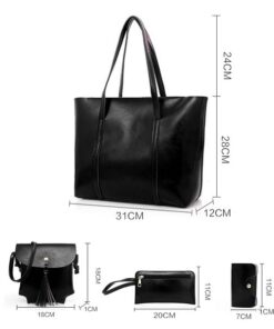 4 Piece Set Women Fashion Handbags Tote Bag Shoulder Bag – Black