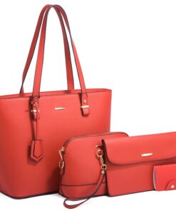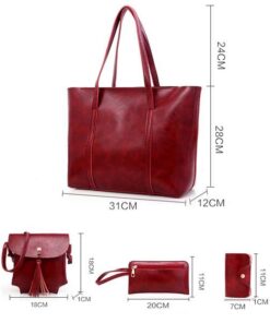 4 Piece Set Women Fashion Handbags Tote Bag Shoulder Bag – Red