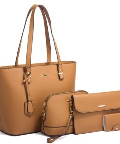4 Piece Handbags Top Handle Satchel Bags Tote Bags Tote Purses – Brown