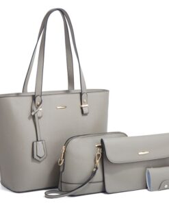 4 Piece Handbags Top Handle Satchel Bags Tote Bags Tote Purses – Grey