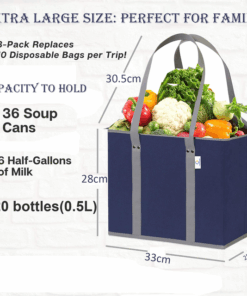 3 Pack Reusable Grocery Bags Large Tote Folding Shopping Bag – Navy Blue