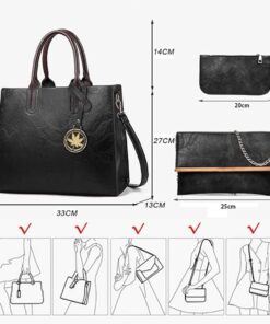 3 Pcs Women Handbags Sets Large Capacity Handbag Chain Shoulder Bag Purses – Black