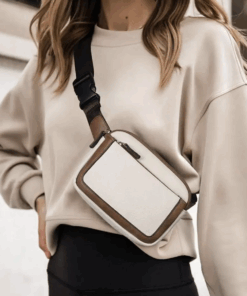 3-Pocket Faux Leather Chest & Bum Bag – White & Tan
