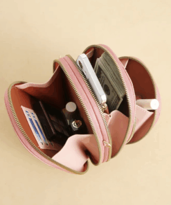 3-Pocket Crossbody Bag with V-Stitch Detail – Pink Rouge
