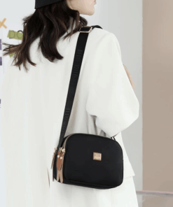 3-Pocket Nylon Crossbody/Shoulder Bag – Black