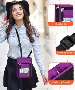 Multifunctional Travel Neck Pouch Passport Holder with RFID Blocking – Purple