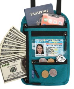 Security Travel Neck Pouch RFID Blocking Passport Holder Neck Wallet – Blue