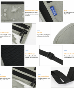 Waterproof Elegant Unisex Waist Bags-PKM – Grey with Black Straps