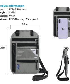 Waterproof Travel Neck Wallet with RFID-Blocking Passport Holder – Grey