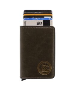 Anti-theft RFID Slide Out Aluminum and PU Leather Credit Card Wallet – Brown