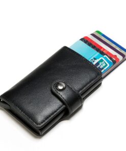 Leather Aluminium RFID Credit Card Holder Case-Black