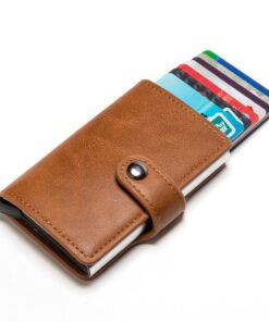 Leather Aluminium RFID Credit Card Holder Case-Brown