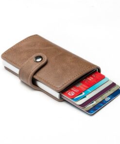 Leather Aluminium RFID Credit Card Holder Case-Coffee