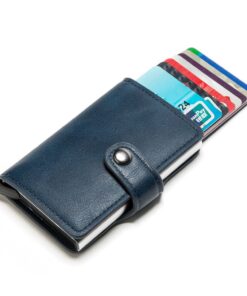 Leather Aluminium RFID Credit Card Holder Case-Dark Blue