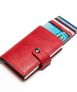 Leather Aluminium RFID Credit Card Holder Case-Red
