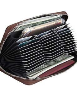 Leather RFID Blocking Credit Card Holder Wallet-Brown