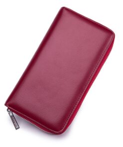 Leather RFID Blocking Credit Card Holder Wallet-Wine Red