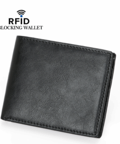 Men’s Bifold Wallet RFID Blocking Real Leather Minimalist with ID Window