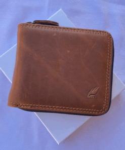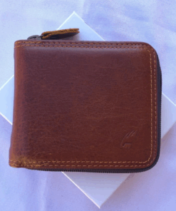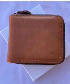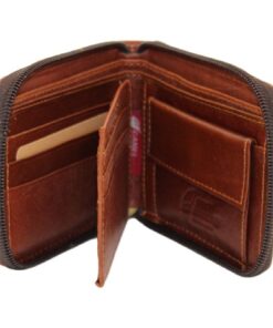 Men’s Genuine Leather Zip Around Bifold Wallet for 6 Cards – Brown