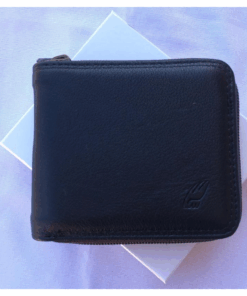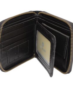 Men’s Genuine Leather Zip Around Bifold Wallet for 6 Cards – Black
