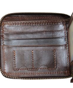 Men’s Genuine Leather Zip Around Bifold Wallet – Dark Brown