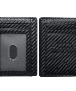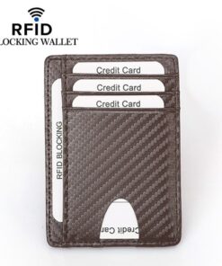 MTVN -Slim Minimalist Carbon Fiber Weave RFID Blocking Leather Wallet – Dark Brown